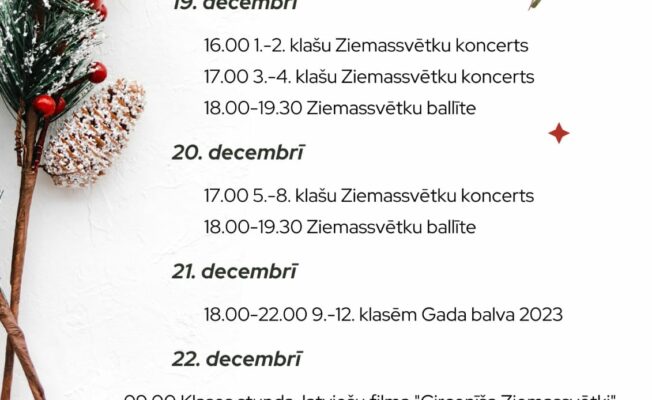 Ziemas brīvdienas – no 2023. gada 25. decembra līdz 2024. gada 5. janvārim