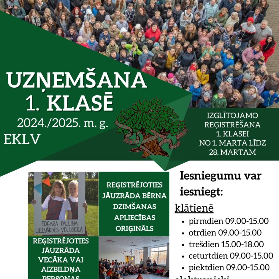 Uzņemšana 1. klasēm 2024./2025. m.g ir sākusies. Uzņemšanas nosacījumus skatīti šeit.