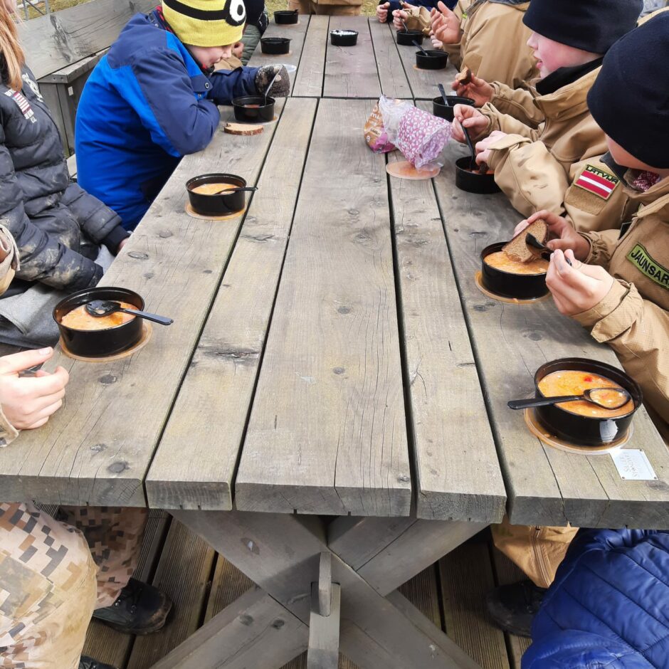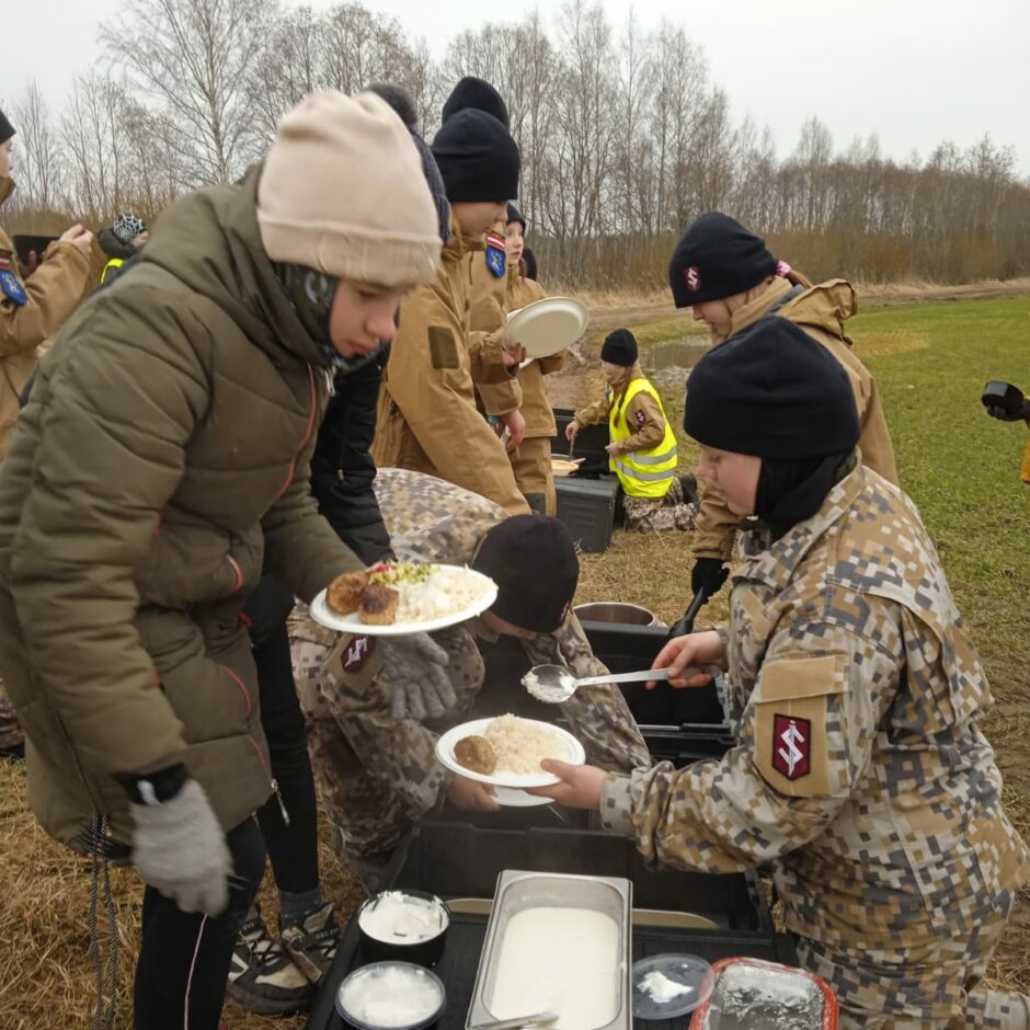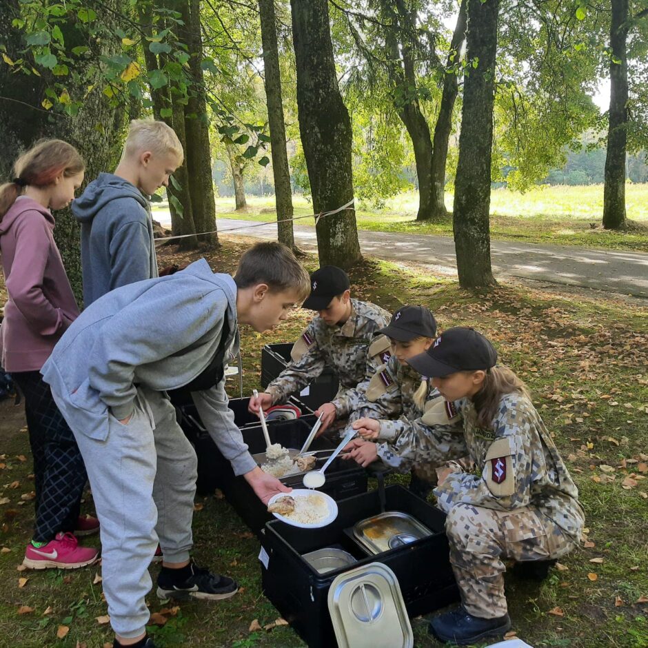 Skolēni ēno Jaunsargu instruktori