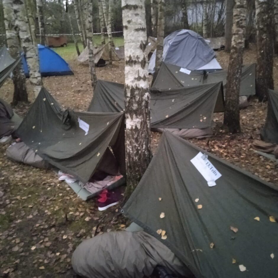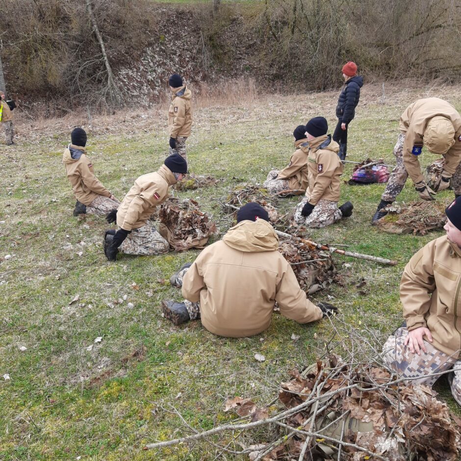 Jaunieši nostiprināja nodarbībās iegūtās zināšanas topogrāfijā, ierindas mācībā, lauku kaujas iemaņās, telts celšanā.