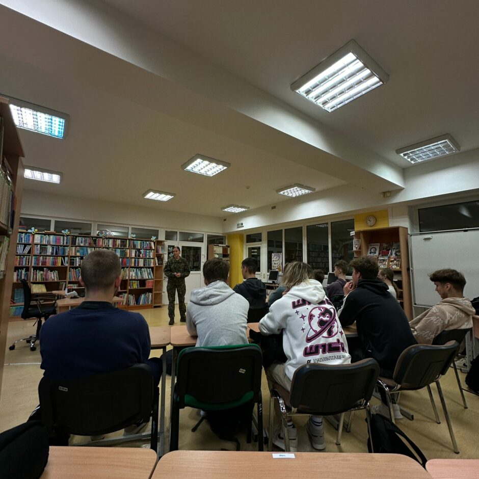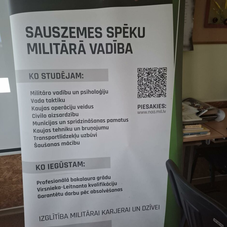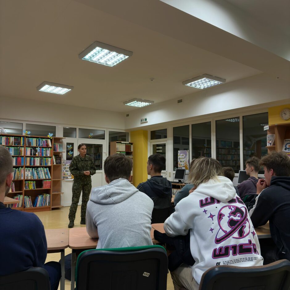1.c klašu skolēniem Zanda Bergmane stāstīja par karavīra profesiju, savukārt 10. un 12. klašu skolēniem stāstīja par savu pieredzi armijā un kā viņa līdz tai nokļuva. Skolēni tika informēti par valsts aizsardzības dienestu un pieteikšanos tajā - gan brīvprātīgo, gan iesaukšanas. Skolēni uzzināja, kādas ir galvenās priekšrocības, ja izvēlēsies pēc vidusskolas iestāties armijā.