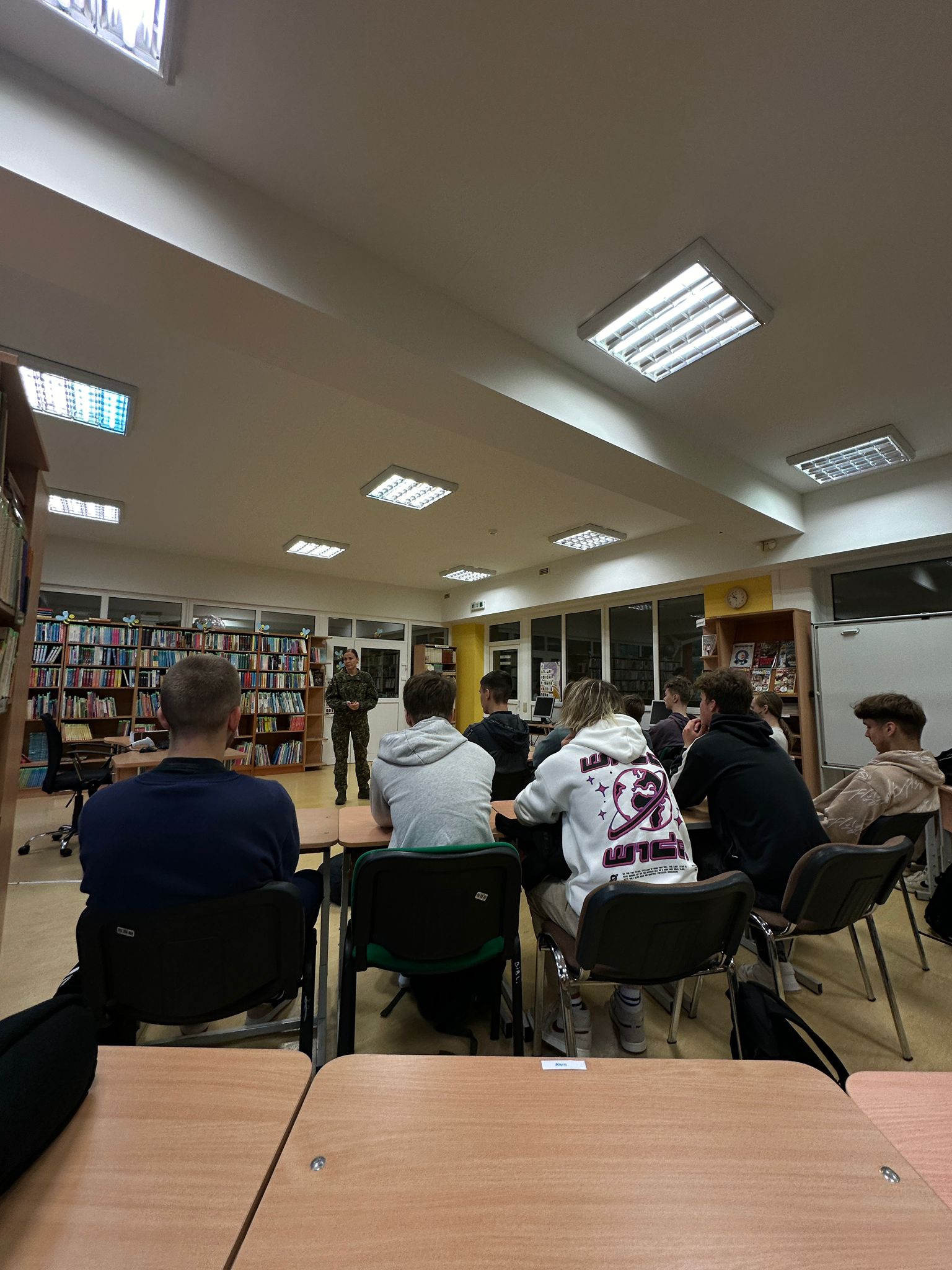1.c klašu skolēniem Zanda Bergmane stāstīja par karavīra profesiju, savukārt 10. un 12. klašu skolēniem stāstīja par savu pieredzi armijā un kā viņa līdz tai nokļuva. Skolēni tika informēti par valsts aizsardzības dienestu un pieteikšanos tajā - gan brīvprātīgo, gan iesaukšanas. Skolēni uzzināja, kādas ir galvenās priekšrocības, ja izvēlēsies pēc vidusskolas iestāties armijā.